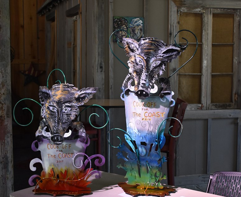 Trophies made by local St. Bernard artist Luis Colmenares.