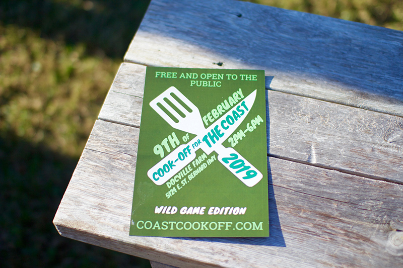 Well, true to St. Bernard’s heritage of amazing food and caring people, crowds dug in at the second annual Cook-Off for the Coast at the Meraux Foundation’s Docville Farm on February 9th. Cook teams from throughout the area served up wild game dishes from Louisiana’s coastal wetlands to raise money and awareness in support of habitat preservation projects. In order to allow as many people as possible to enjoy the event, admission was free, with money raised through sponsorships.